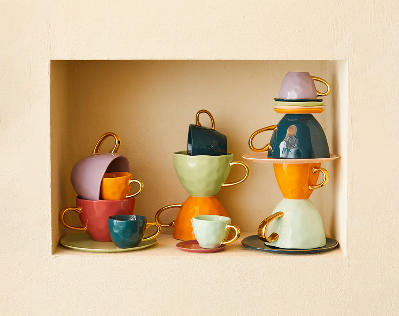 Kleurrijk en handgemaakt aardewerk servies